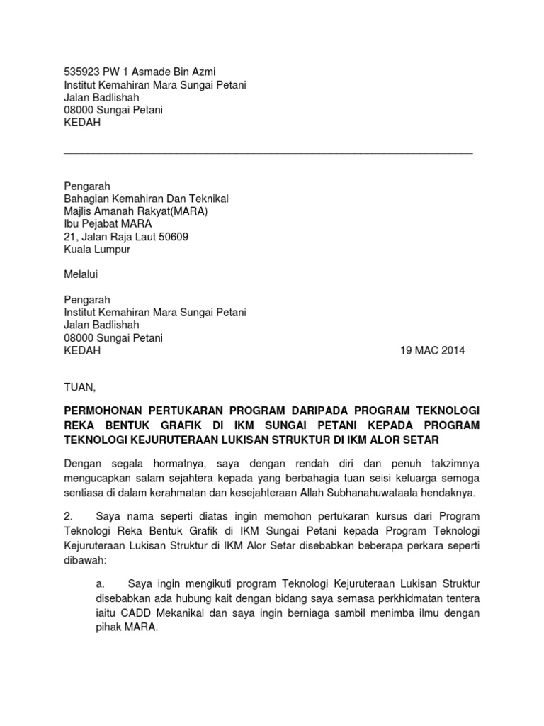 Surat Permohonan Pertukaran Pdf
